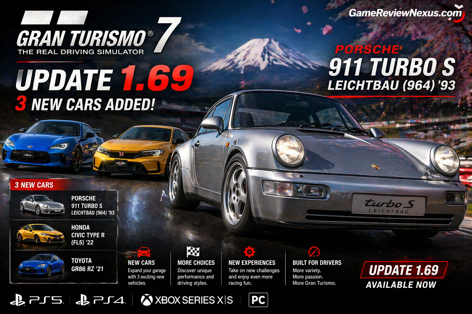 Gran Turismo 7 Update 1.69 has officially been released, continuing Polyphony Digital’s commitment to expanding the game with high-quality content. This latest update introduces three new cars, with the standout being the legendary Porsche 911 Turbo S Leichtbau (964) ’93.
